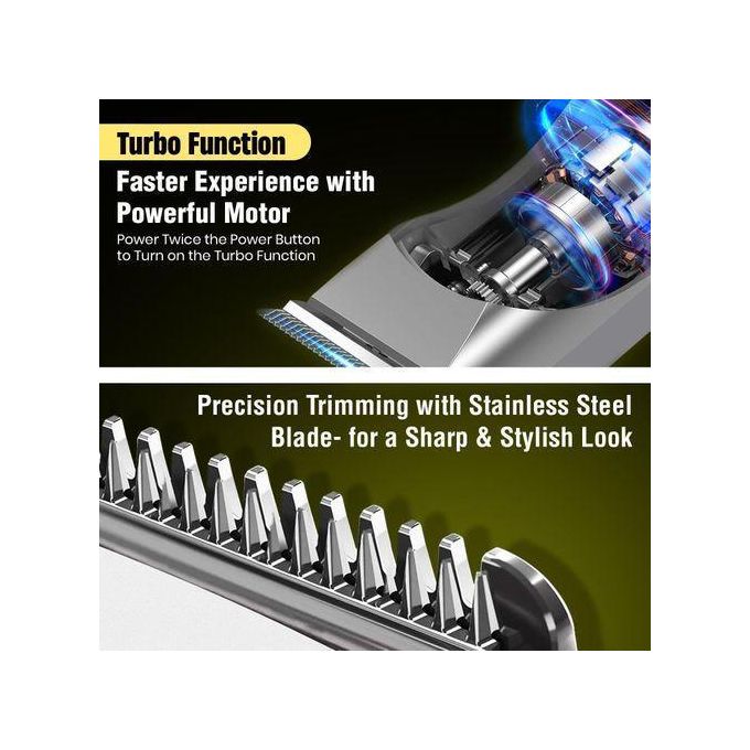 مزودة بشفرة حادة عالية الجودة لضمان قص ناعم وسريع دون سحب الشعر، بالإضافة إلى موتور قوي لتجربة حلاقة فائقة الثبات.